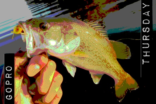 The bass above unfortunately is not a still shot from the GoPro. As Murphy’s Law of Combat Angling states in rule 12: “No fish shall be captured on film day one of camera purchase.”