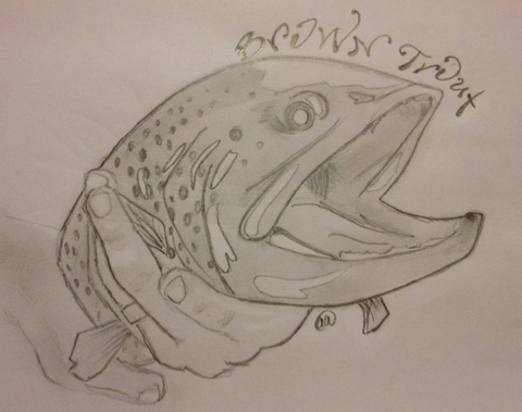 What I’ve come up with is my best attempt (and new phone background) at the sexy brown trout I’ve been seeing in all the Vimeo clips and pics online. Do the math on that and you’ve got it- I have yet to catch one. I’ve caught 1 Brookie and plenty of Rainbows but the Brown Trout is still on my MIA list. I am, however, only a first year angler. Accordingly, this consumes my thoughts and has manifested itself here. I hope to find myself in a chance contact fight with one for a quick catch, pic, and release someday.