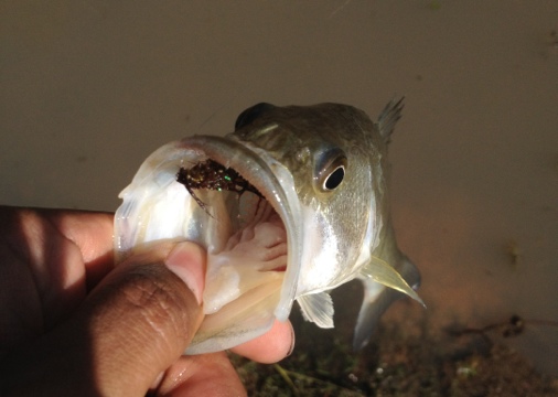 Bringing up the rear was a 15.5″ largemouth bass. He wouldn’t sit still either but it always makes my day when I get a decent bass. This was a nice final touch to add points to the board. All in all it was the best thing to get skunked on the Guad that day. Sometimes you have to just know when to shift fire.
